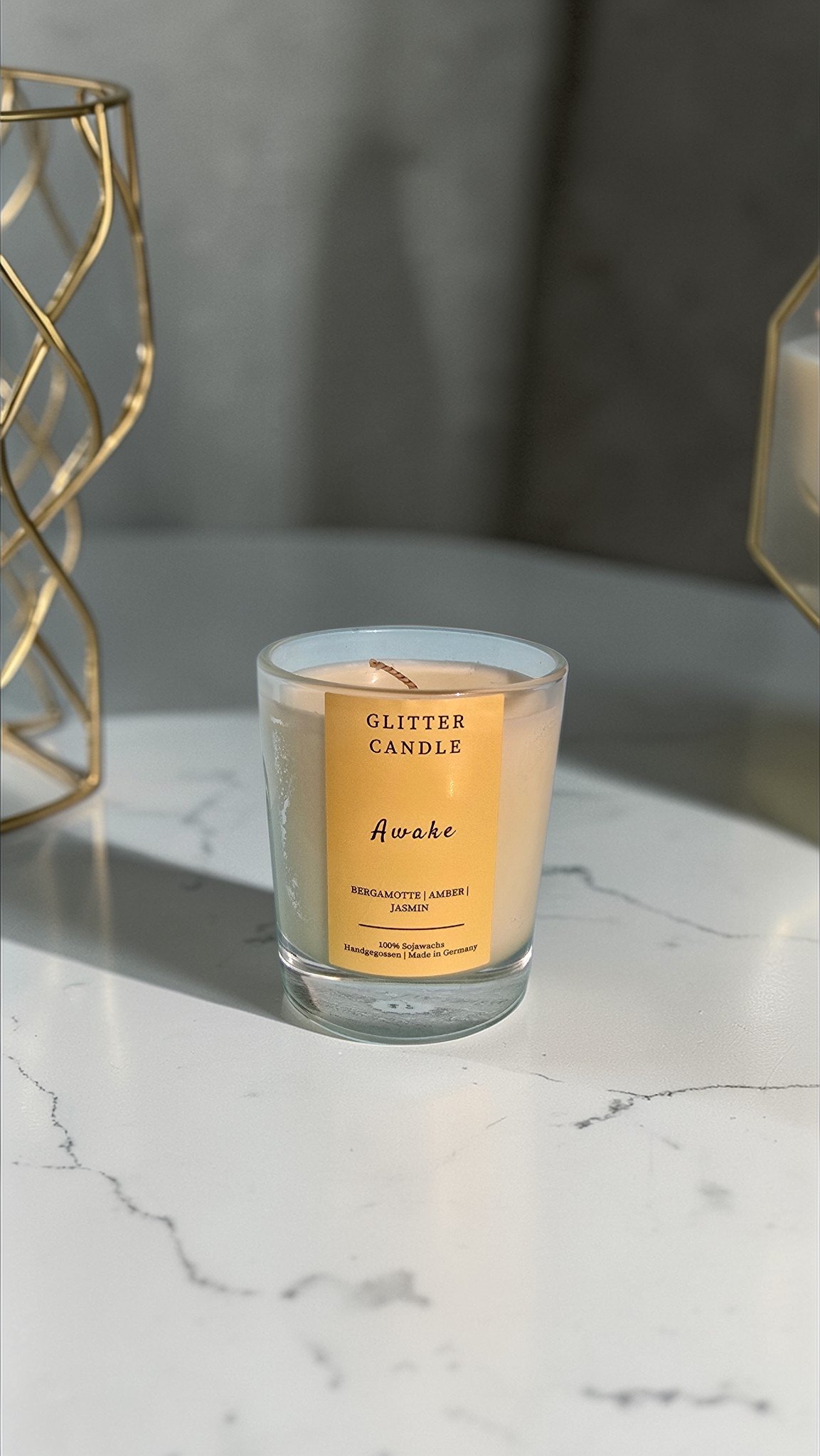 Lass dich von der kleinen Awake Glitterkerze beleben und genieße sommerliche Leichtigkeit, wann immer du sie brauchst.