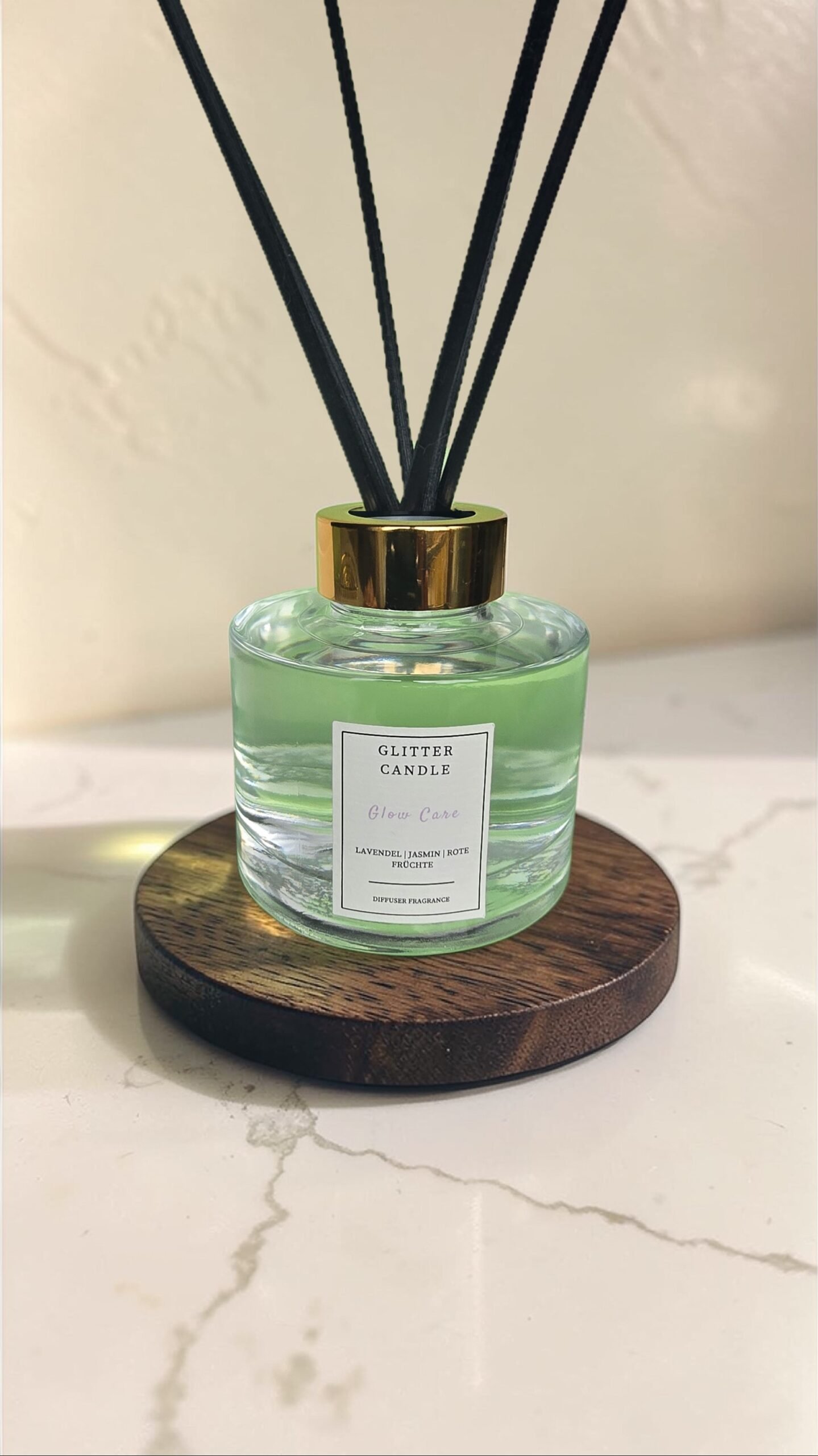 Unser beliebter Signature-Duft Glow Care ist jetzt auch als edler Reed Diffuser erhältlich. Dieser Raumduft ist weit mehr als nur ein angenehmer Geruch: Er ist eine Einladung, in deinem Zuhause eine Atmosphäre der Ruhe und inneren Stärke zu schaffen. Während unsere Glow Care Kerze mit dem roten Aura-Kristall punktet, sorgt der Diffusor für eine langanhaltende, gleichmäßige Duftabgabe, die dein Wohlbefinden rund um die Uhr unterstützt.