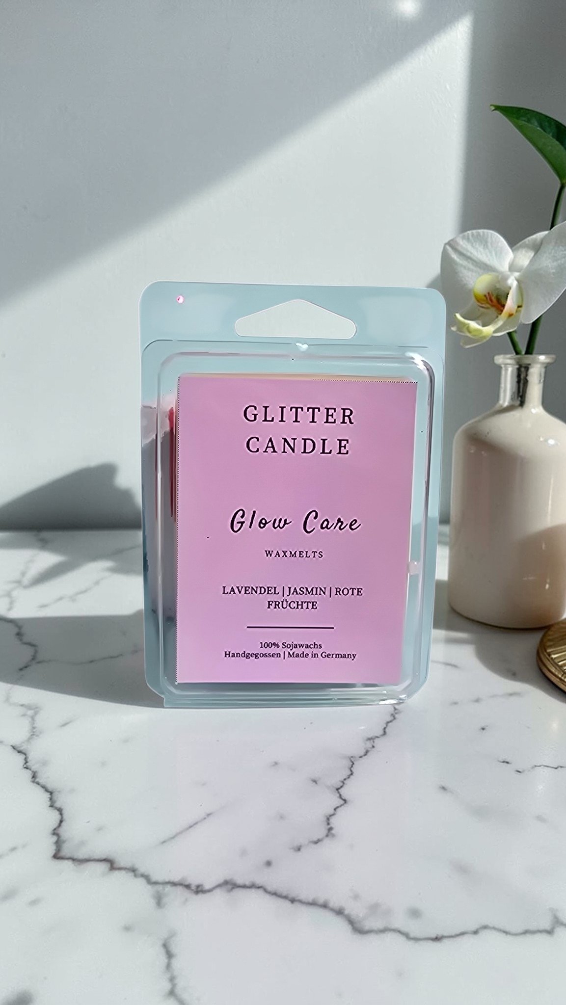 Gönn dir eine wohlverdiente Auszeit und schaffe eine Atmosphäre von innerer Stärke und Geborgenheit. Unsere Glow Care Wax Melts sind die ideale, flammenlose Lösung für deine Me-Time. Hochkonzentriert und mit edlen Parfümölen veredelt, hüllt dieser Duft dein Zuhause in sanfte, beruhigende Schichten.