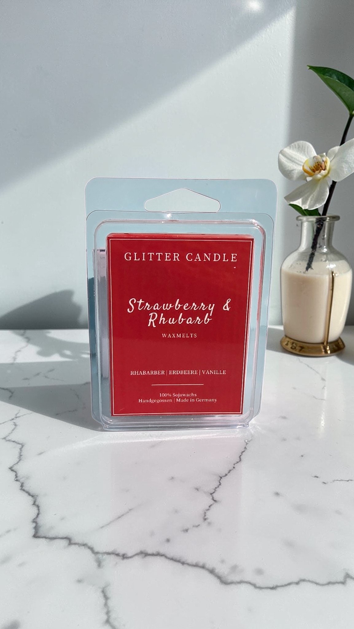 Genieße mit den Strawberry & Rhubarb Wax Melts einen Moment voller Frische, Süße und sommerlicher Leichtigkeit.